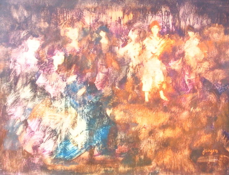 Autodidacte, Daniel a développé une technique originale, unique et très artistique. La texture ajoute du charme à ses tableaux. De près c’est presqu’un abstrait ,mais les formes abstraites deviennent des éléments figuratifs en impressionnisme moderne lorsque l’on s’éloigne du tableau. Il a créé des visages pour ses compositions de baladeurs reconnaissables dans toutes ses scènes de personnages.